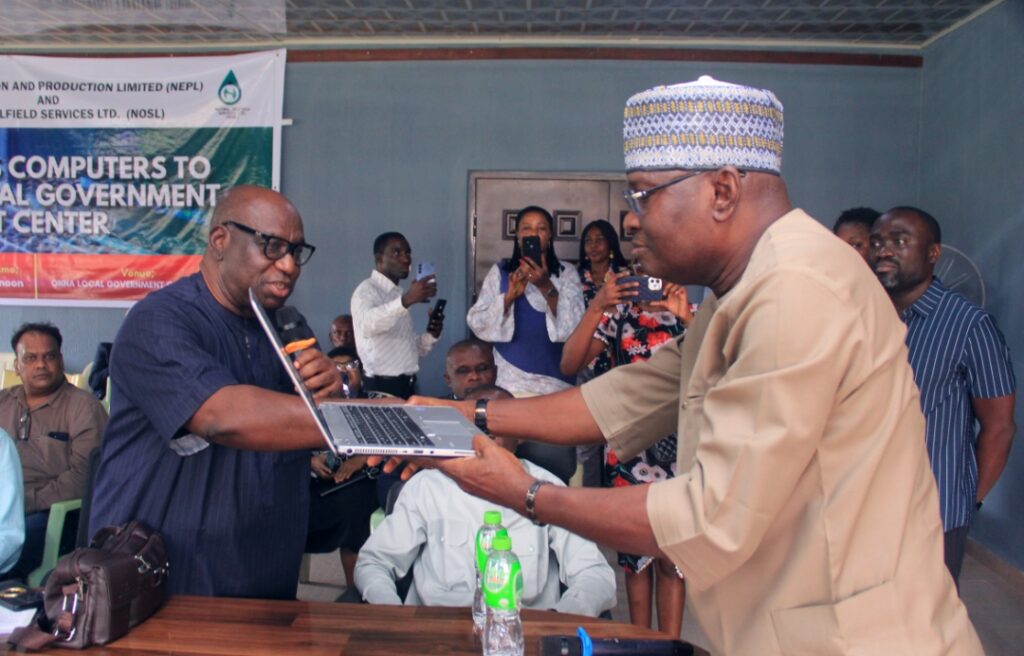 In a significant move to advance technological education in ONNA Local Government Area, NNPC Exploration and Production Limited ,NEPL, and Natural Oilfield Services Ltd ,NOSL, have donated laptops to the Transition Chairman of ONNA LGA, Hon. IniAbasi Ekanem.
