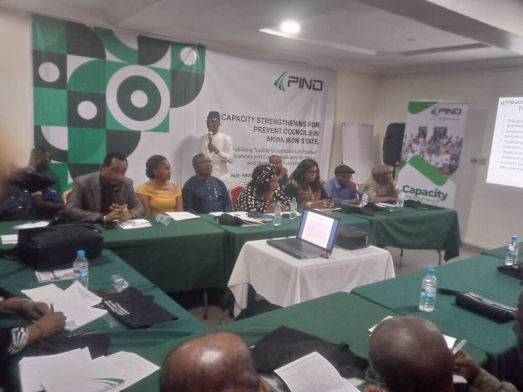 This was disclosed by Afeno Super Odomoro, Peacebuilding Research Coordinator (PIND) who represented PIND Executive Director, Tunji Idowu in a peace building program with the Theme: “Capacity strengthening for prevention of conflicts in Akwa Ibom State” held on Thursday August 29, in Uyo.